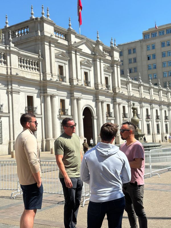 turistas de www.belocalchiíe.com contemplando el palacio de la moneda